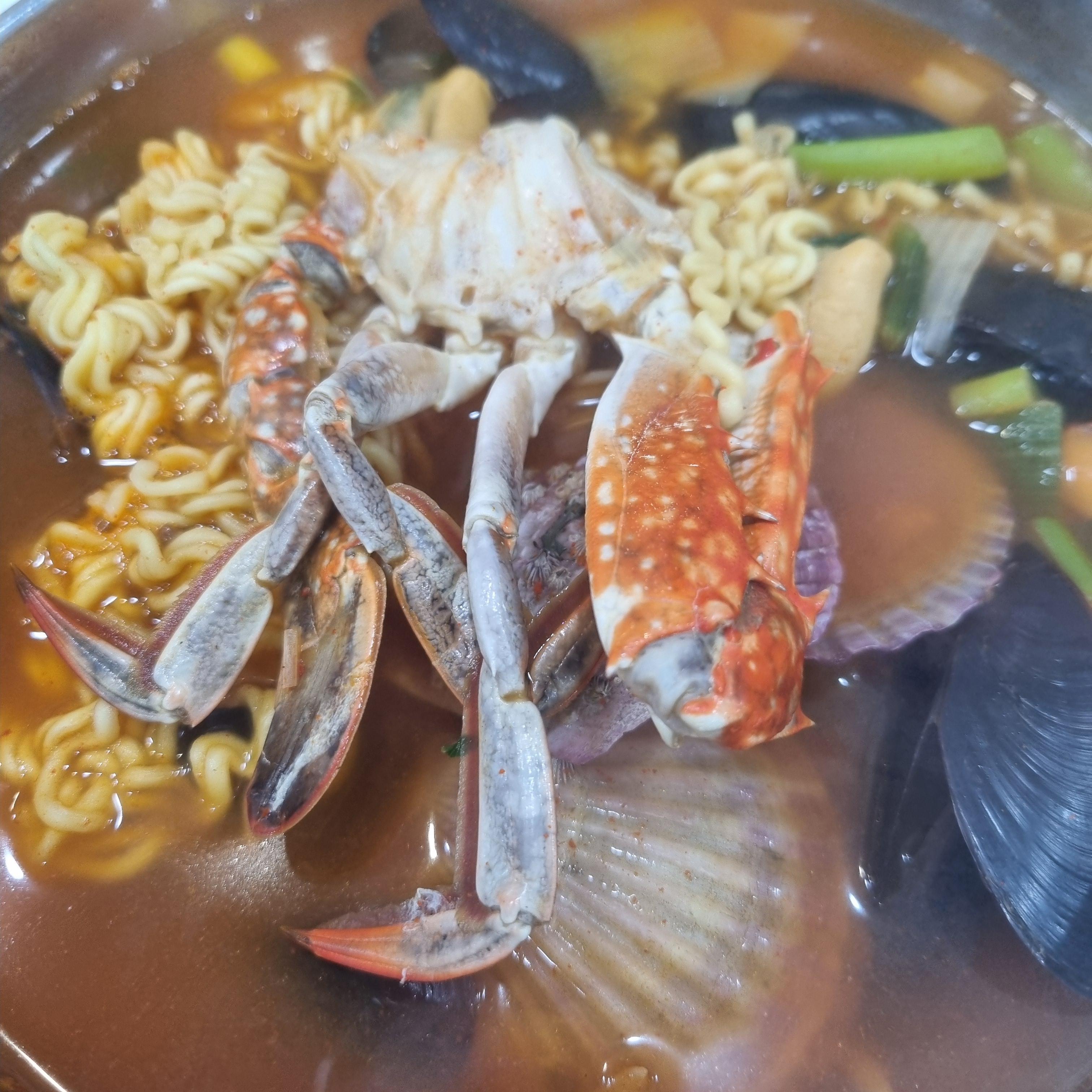 해물라면 냠 이게 동시에 시키니까 찜 시간이 걸리는 석화 빼고