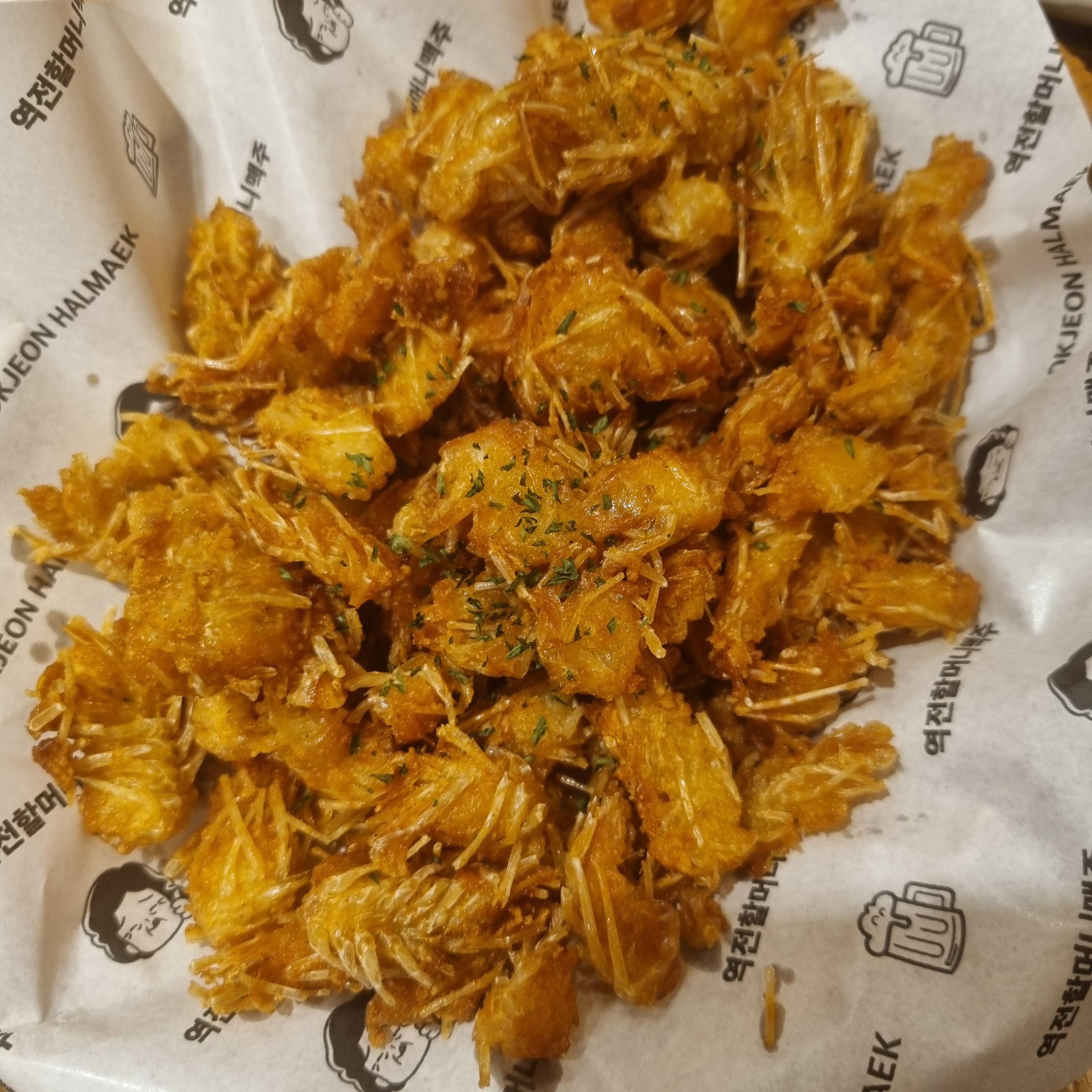 ✨튀김쥐포 : 배는 부른데 뭐 입은 심심할 때 시키는 메뉴 같아요ㅋㅋ 근데 이게 뒤로 가면 기름 맛이 좀 잘 느껴지면서 물릴 수가 있더라구요! 뭔가 기름을 한껏 머금은 느낌이 들어서..ㅋㅋㅋ그래도 바삭하고 안주 중에 제일 저렴한 메뉴 중에 하나라 무난하게 시킬 수 있어요!