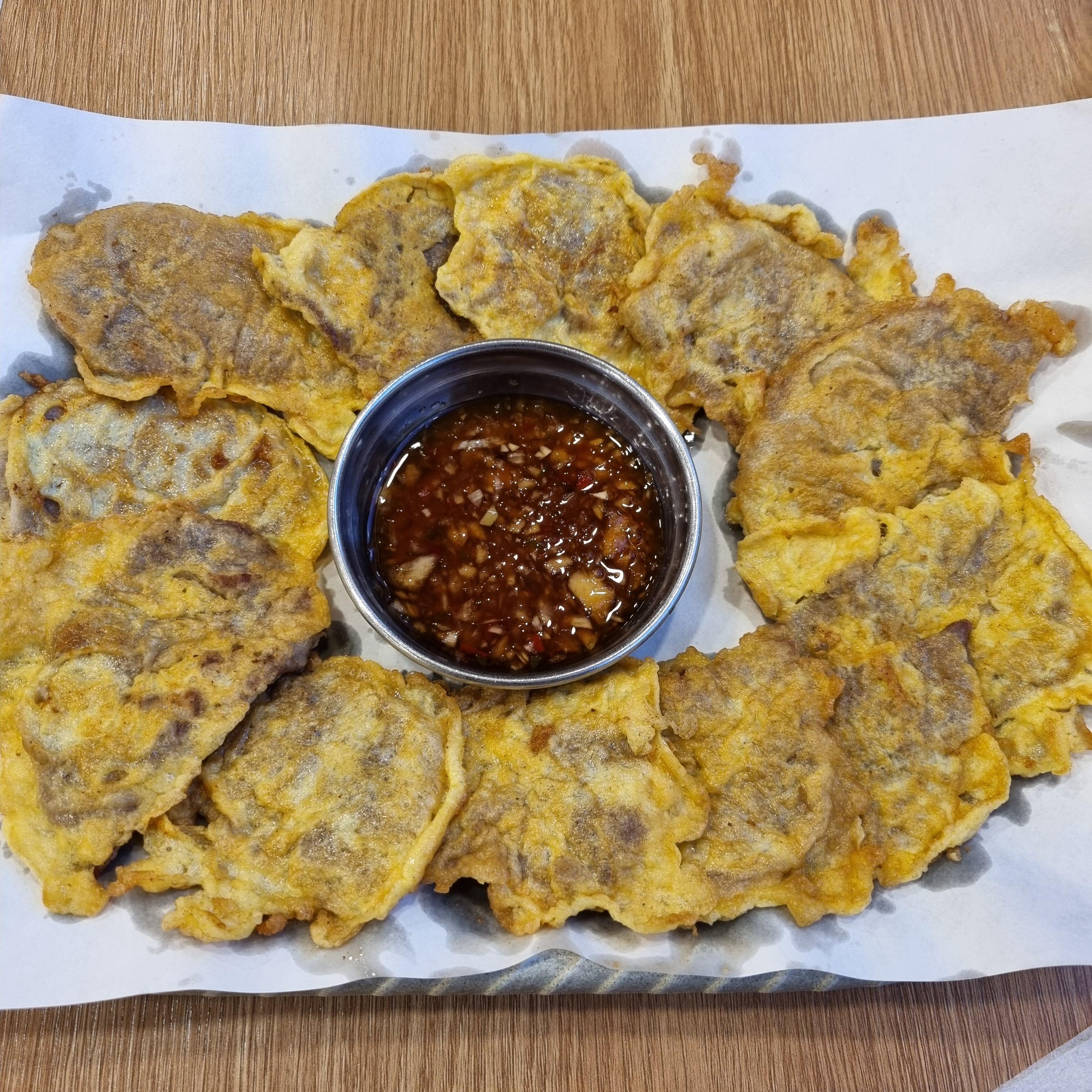 ✨소고기육전 : 바로 나온 거 한 입 와앙..하고 먹었는데 진짜 맛있었어요ㅠㅠ 두께도 씹기 딱 적당하고 많이 질기지도 않아서 식감도 좋았습니다ㅠㅠ 육칼 먹다가 입이 심심할 때 육전 하나 먹어주면..육개장과 육전의 궁합도 너무 좋았습니다. 안 시켰으면 후회할 뻔했어요..😚