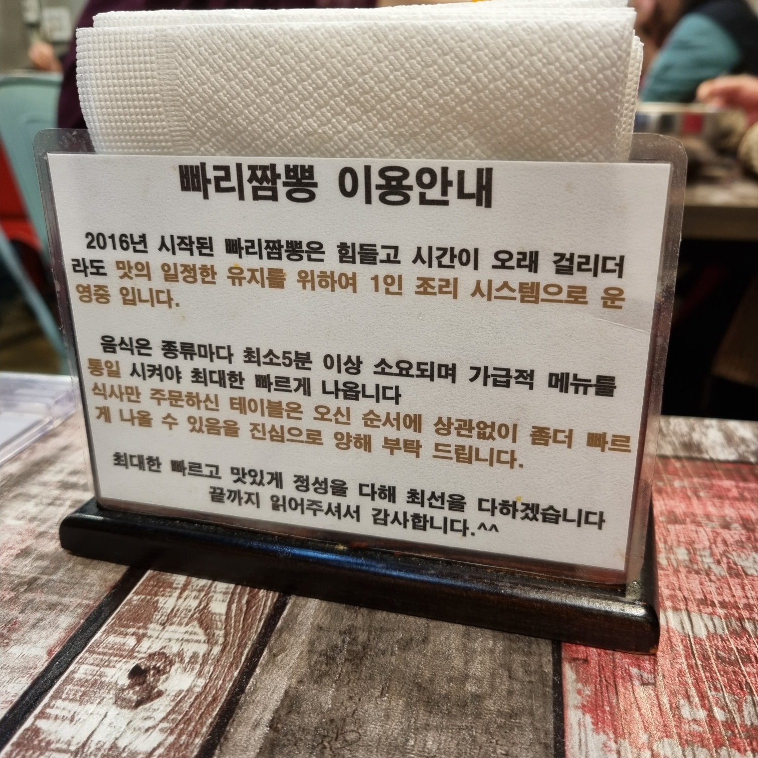 마감 직전이라 그런지 짬뽕은 빠리짬뽕만 가능했습니다..저번에도 그냥 짬뽕이 안 돼서 못 먹었는데..ㅠ