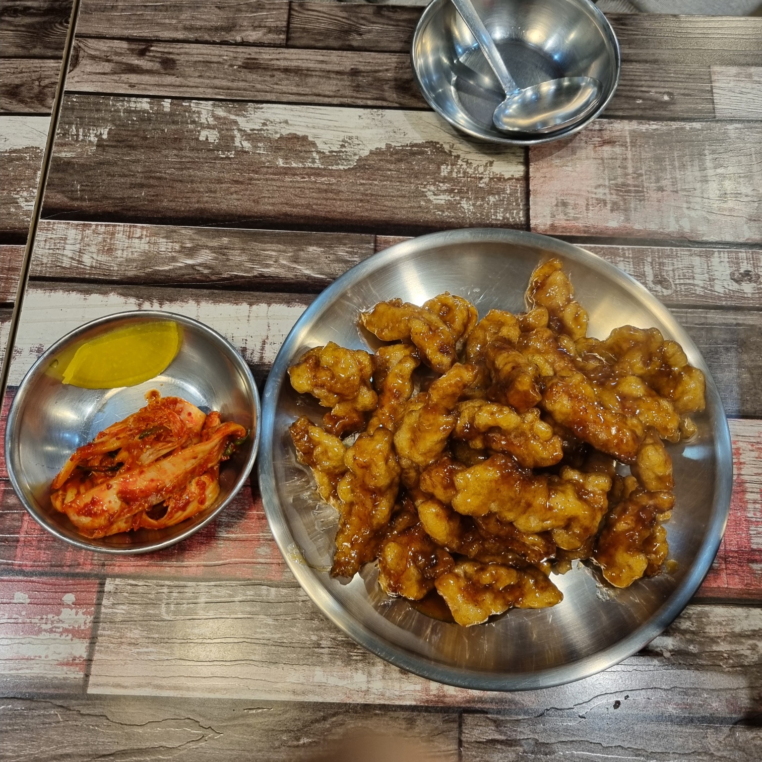 먼저 나온 탕수육! 김치랑 같이 먹습니다...김치 또 먹고 싶어요..